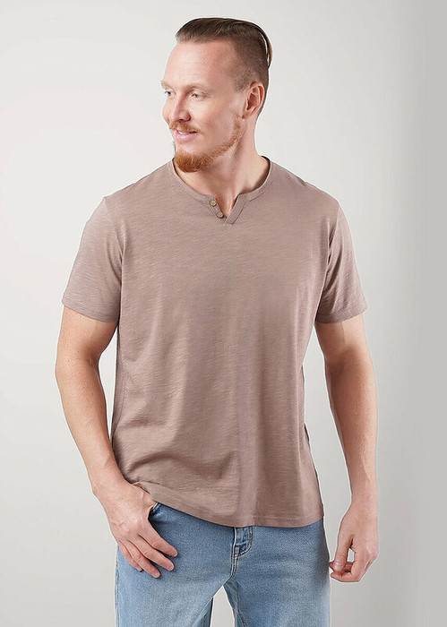 Футболка мужская с округлой горловиной и планкой из фактурного полотна ""флам"". Данная модель прекрасно комбинируется с джинсами или шортами. Отличное решение на лето для прогулок с друзьями или поездки на отдых.