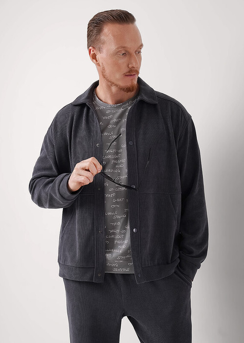 Мужская куртка с отложным воротником,с планкой на кнопках из вельвета. Накладные вместительные карманы добавляют удобства в носке. Куртка в стиле casual составит отличный комплект к брюкам.