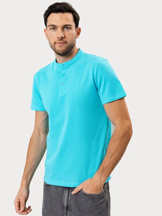 Стильная футболка поло с оригинальным воротником-стойкой и удобной застежкой на 3 пуговицы. Благодаря лаконичному дизайну, прямому силуэту и комфортной длине до середины бедер она наверняка станет любимой в гардеробе, ведь отлично подходит практически ко всему.