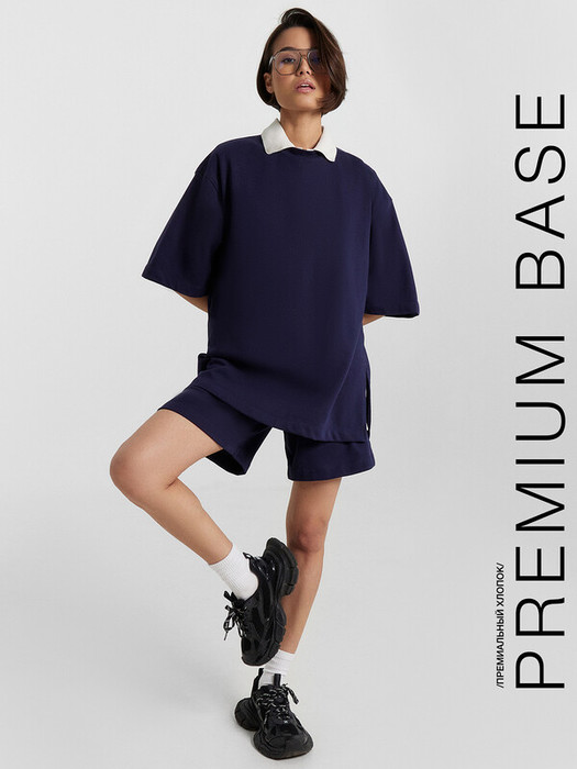 Блуза женская свободного силуэта из трикотажного полотна футер. Горловина круглой формы, обтачка горловины из рибаны. Шов горловины спинки закрыт хб тесьмой. Плечо спущено, пройма углублена, рукав втачной удлиненный. По плечу и пройме проложены отделочные строчки. Блуза  удлинена, с разрезами в боковых швах. Шорты женские свободного силуэта из трикотажного полотна футер. Пояс цельнокроеный с эластичной тесьмой внутри. На внутренней стороне пояса пробиты петли и вставлен шнур 10мм, (ШНУР 10PX-1). В боковых швах обработаны карманы.