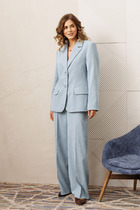 Брюки с посадкой на талии, прямого силуэта. Пояс цельнокроеный с резиной внутри. Низ брюк обработан швом в подгибку.