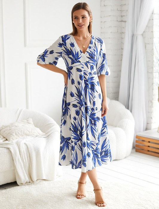 27.03 Vilatte Платье из вискозы с лиоцеллом D22.236 синий-белый