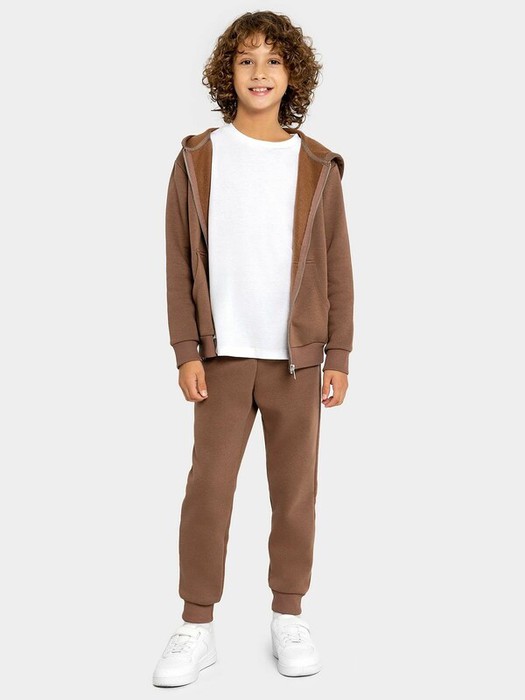 Комфортный комплект для мальчиков из трикотажного футера с теплым подчесом. Включает худи на молнии свободного силуэта с капюшоном и брюки прямого силуэта с эластичной тесьмой и регулировочным шнурком в поясе. Линия плеча жакета немного спущена, что дарит свободу движений. Практичности добавляет карман-кенругу. Рекомендуем вашему мальчику!