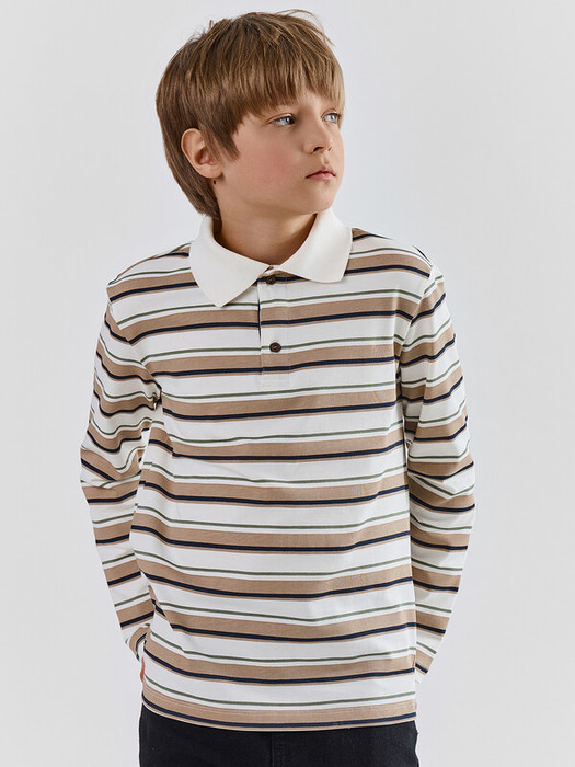 Поло для мальчиков прямого силуэта. Рукава втачные длинные. Плечо слегка спущено. Горловина округлый формы с рубашечным воротником из довяза DOV-16, DVC-85/001-0/5 . Шов обработки горловины - закрыт х/б тесьмой 10 мм 10TGY-O. По переду обработана застежка на петли и пуговицы d=10 mm.