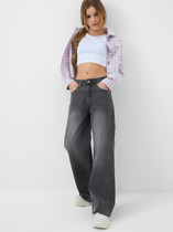Свободные подростковые джинсы с заниженной посадкой и модным объемным силуэтом balloon для мальчика подростка. Брюки выполнены из плотного денима с характерной текстурой. Пояс на резинке со шнурком позволяет регулировать посадку. Спереди — два удобных кармана, сзади — два кармана с клапанами на липучке. Спереди закреплен декоративный металлический карабин с ключами, создающий акцент в уличном стиле. На одном из задних карманов — чёрная нашивка с бело-красным шрифтовым текстом, а на задней части левой штанины — вертикальный принт с мотивационной надписью на английском языке.