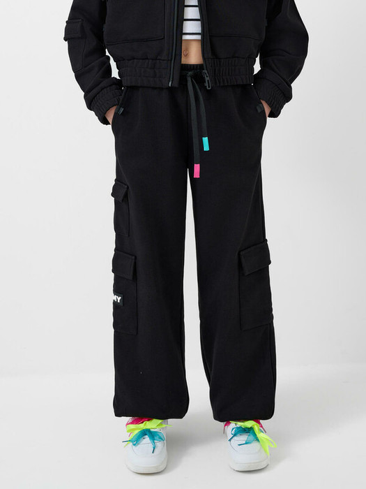 Брюки спортивные для девочки подростка. Выполнены из хлопкового трикотажа футер без начеса. Модель свободного кроя со средней посадкой на талии. Пояс на резинке, дополнительно регулируется шнурком. Удобные боковые карманы и карманы-карго. В нижней части брючин предусмотрены эластичные трикотажные манжеты для лучшей посадки.