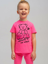 Детская футболка для девочки. Модель прямого кроя, выполнена из эластичного хлопкового трикотажа джерси. Принт с цветами и феями. Горловина круглая. На плече застежка на кнопки для удобного переодевания.