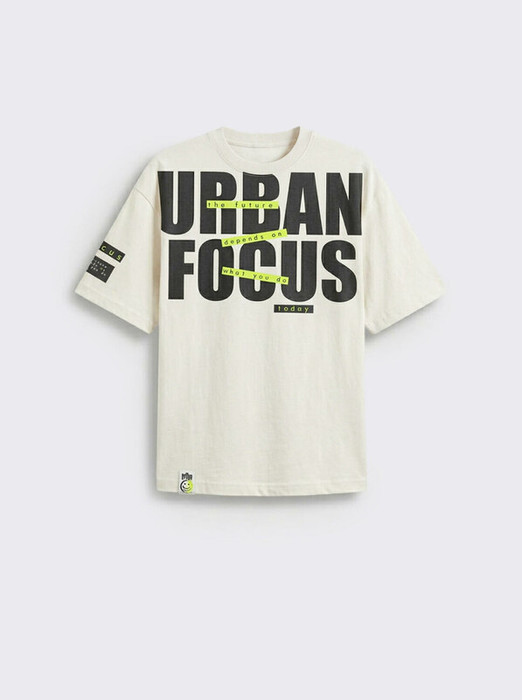 Футболка оверсайз для мальчика подростка. Модель выполнена из эластичного хлопкового трикотажа джерси. На груди расположен крупный принт. Горловина круглая, обработана эластичным рибом. В нижней части и на рукаве — небольшие нашивки.