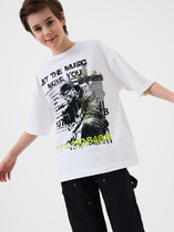 Детская футболка оверсайз для мальчика. Модель выполнена из эластичного хлопкового трикотажа джерси. Спереди расположен крупный принт в гоночной тематике. Горловина круглая, обработана эластичным рибом.