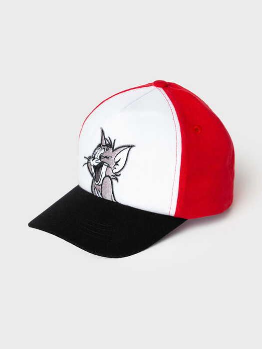 Бейсболка детская для мальчика. Модель выполнена из хлопкового трикотажа с принтом любимых персонажей Том и Джерри. Изогнутый козырек. Отверстия для вентиляции. Застежка на липучку.