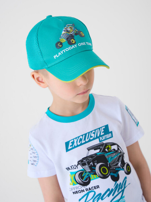 Детская бейсболка для мальчика. Классическая форма с жёстким козырьком, украшенным контрастной окантовкой. Задняя часть выполнена из сетки. Объем регулируется удобной застежкой на липучке сзади. Подходит для активного отдыха и повседневной носки в теплое время года.