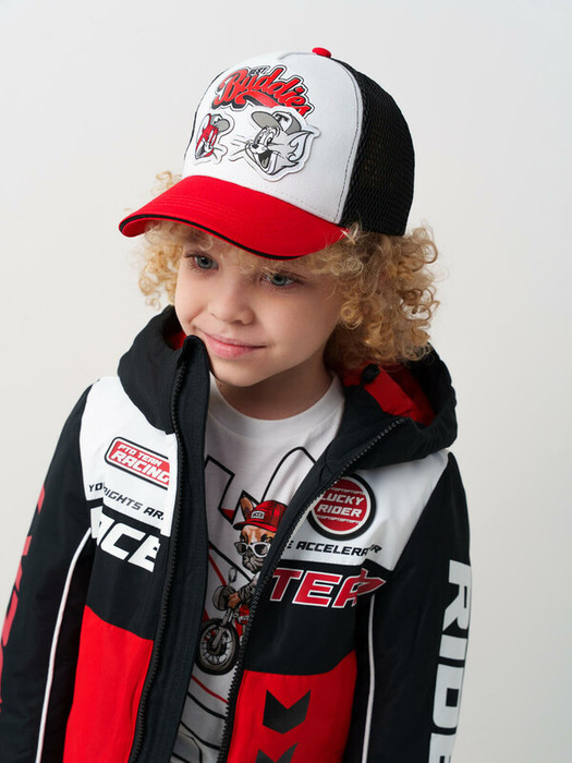Бейсболка детская для мальчика. Модель выполнена из хлопкового трикотажа с принтом любимых персонажей Том и Джерри. Сзади - эластичная сетка для комфорта в жаркое время года. Изогнутый козырек. Застежка на липучку.