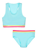 Комплект белья: трусы-шорты и топ со съемными чашками из мягкой трикотажной ткани с добавлением эластана для комфортной носки и свободы движений. Регулируемые бретели. По низу топа и поясу шорт фактурная резинка.