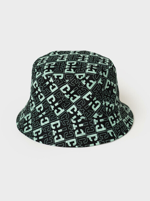 Cтильная двухсторонняя панама для мальчика подростка. Одна сторона выполнена в однотонном мятном цвете с контрастным логотипом, другая — с ярким чёрно-мятным принтом.