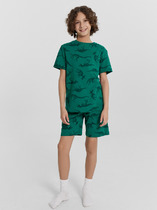 Пижама детская для мальчика. Футболка и шорты из эластичного и приятного на ощупь трикотажа. Шорты на резинке со шнурком.  Шорты с карманами в боковых швах. Высокое содержание хлопка 95%. Благодаря наличию эластана в составе ткани изделие держит форму и меньше мнется.
