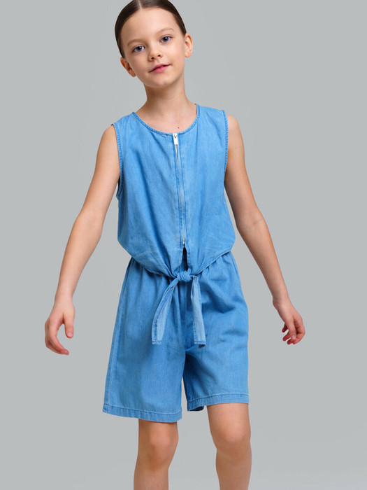 Джинсовый комбинезон для девочки подростка. Джинсовый комбинезон-ромпер из эластичного денима. Посадка comfort fit – свободный крой. Резинка по талии. Застежка на молнию и завязки. Модель выполнена из качественного и плотного текстиля.