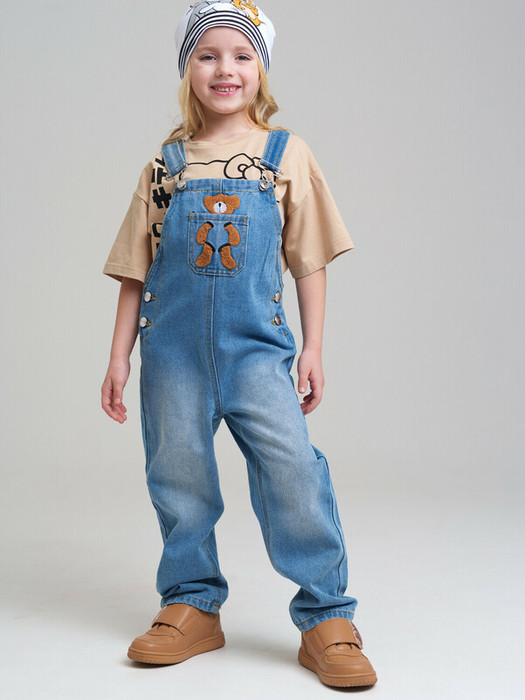 Детский джинсовый комбинезон для девочки. Джинсовый комбинезон-ромпер из эластичного денима. Посадка comfort fit – свободный крой. Регулируемые по длине лямки. Застежка на кнопки по бокам модели. Функциональные карманы. Декор - мишка. Модель выполнена из качественного и плотного текстиля.