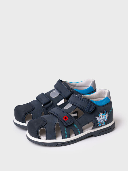 Сандалии для мальчика с закрытой носочной и пяточной частью выполнены из искусственного нубука. Удобный ремень с липучкой позволяют регулировать обувь на любой подъем и позволяют ребенку обуваться самостоятельно. Подкладка выполнена из натуральной кожи. Стелька выполнена из натуральной кожи и имеет анатомический элемент для поддержания свода стопы в правильном положении. Подошва из ТПР гибкая и нескользкая.