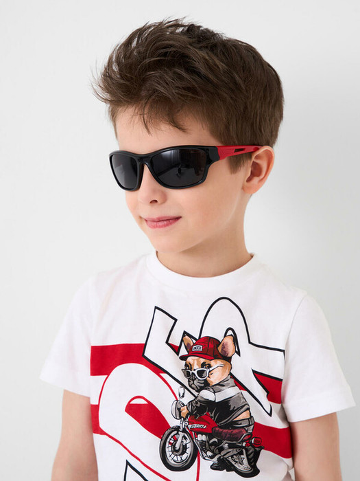Солнцезащитные очки с эффектными красными дужками в стиле Y3K для мальчика подростка. Гибкая пластиковая конструкция мягко облегает лицо, не сдавливая его, и обеспечивают плотную посадку даже во время самых активных занятий ребенка. Солнцезащитные очки с фильтром Cat3. Темные линзы имеют защиту UV400, которая отражает 100% ультрафиолетовых лучей с длиной волны менее 400 нанометров, эффективно блокируя все ультрафиолетовые лучи при солнечном свете. Небьющиеся поликарбонатные линзы на 100% блокируют вредные UVA/UVB лучи. Ширина оправы - 135 мм, длина дужки - 120 мм. Обхват головы 50-52 см. Такие очки эффективны для защиты глаз в тропиках, у моря и в горах. Очки транспортируются в картонной коробке. В комплект входит фирменный текстильный чехол из микрофибры, с помощью которого легко ухаживать за изделием. Очки транспортируются в картонной коробке.