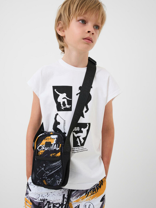 Трендовая сумка кросс-боди для мальчика-подростка. Регулируемый брендированный ремень. Основной отсек на молнии, спереди дополнительный карман на молнии, сзади карман для транспортной карты.  Внутри есть карман на молнии. Параметры: высота - 18 см, ширина -13 см, глубина - 6 см.