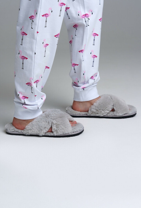 Верх тапочек выполнен из мягкого искусственного меха. Противоскользящая подошва. Легкая конструкция.