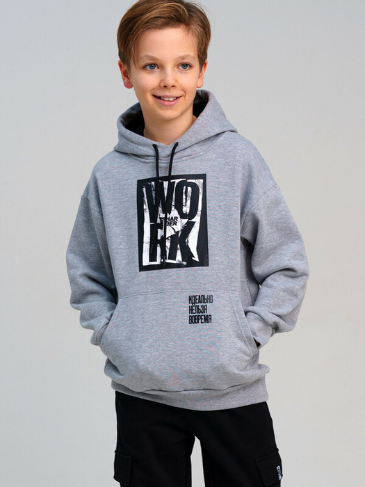 Худи для мальчика подростка. Толстовка с высоким содержанием хлопка. Капюшон регулируется шнурком. Трикотажные манжеты. Карман-кенгуру.