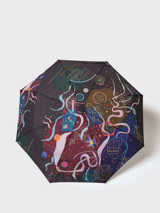 Зонт-автомат для девочки-подростка из коллаборации с Третьяковской галереей. Принт - фрагмент картины Василия Кандинского, Движение, 1935. Брендированная ручка и фирменные элементы. Длина 28 см, диаметр купола 97 см. Механизм складывания - автомат.