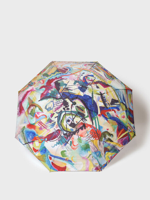 Зонт-автомат для девочки-подростка из коллаборации с Третьяковской галереей. Принт - фрагмент картины Василия Кандинского, Композиция VII, 1913. Брендированная ручка и фирменные элементы. Длина 28 см, диаметр купола 97 см. Механизм складывания - автомат.