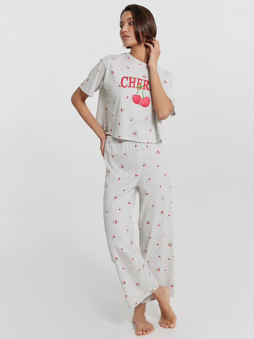 Совместные покупки Пермь Женская одежда Домашняя одежда — Mark Formelle КОМПЛЕКТ ЖЕНСКИЙ (ФУТБОЛКА, БРИДЖИ) 592444 592444 вишни на сером м
