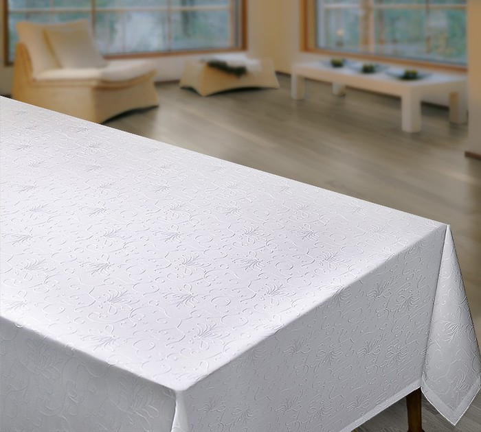 Изделия из ткани, С ТЕФЛОНОВОЙ ПРОПИТКОЙ, выполненной специально для скатертей, имеют высокие потребительские качества, долговечны и практичны, нарядны и современны. Идеально подходят как для дома, так и для ресторанов и кафе. Производитель - фабрика "WISAN". Польша. 100 % полиэстер.