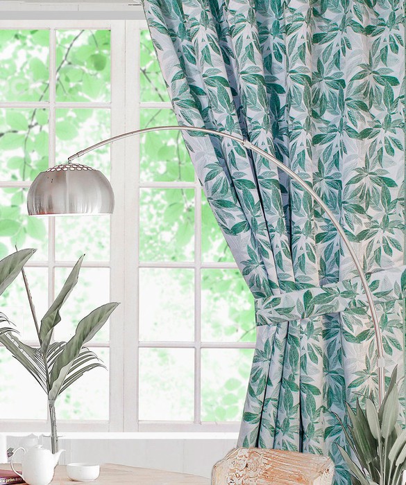 Совместные покупки Пермь Товары для дома и дачи Шторы — 4964 З, ТЕНЕРИФЕ, цвет - белый фон/зеленый рисунок, ширина 185 см