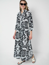 Платье свободного силуэта из вискозной плательной ткани. Изделие отрезное по линии талии, с ярусами на юбке. V-образный вырез горловины с декоративной завязкой. Рукав втачной, снизу присборен и окантован бейкой. В комплекте пояс из основной ткани. В таблице размеров представлены параметры человека, а не изделия.