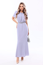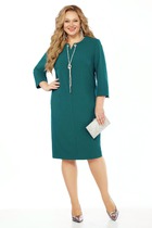 Платье свободного силуэта из эластичного полотна с жаккардовым узором. V-образный вырез горловины обработан притачной планкой. Втачной длинный рукав в спущенную пройму с манжетой. Манжет рукава и планка выполнены из ткани-компаньона.