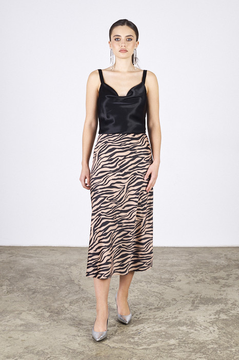 Юбка, слегка расширенная книзу из атласной ткани. Крой юбки по косой, на линии талии скрытая резинка.