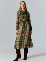 Платье прилегающего силуэта из атласной ткани. Крой платья по косой. Втачной длинный рукав. Круглый вырез горловины, сзади застёжка на петлю-пуговицу.