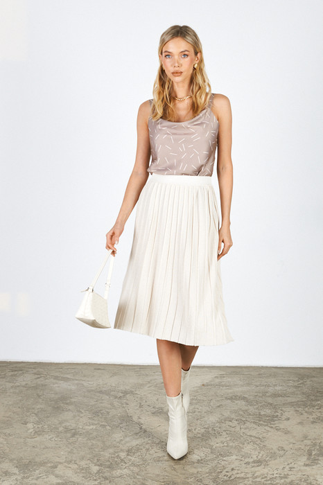 Юбка плиссе с притачным поясом. Изделие выполнено из шелковистой вискозной пряжи.
