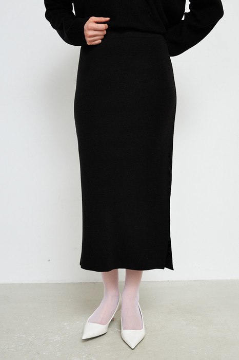 Юбка прилегающего силуэта с эластичным поясом и разрезом в боковом шве. Изделие выполнено из мягкой структурированной пряжи.