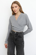 Джемпер свободного силуэта со спущенной линией плеча и рукавом до локтя выполнен из эластичного полотна. Вырез горловины оформлен бейкой из основной ткани. На передней части изделия выполнена аппликация. В таблице размеров представлены параметры человека, а не изделия.
