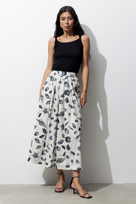 Юбка из вискозной ткани свободного силуэта со складками по линии талии. Пояс с эластичной резиной.