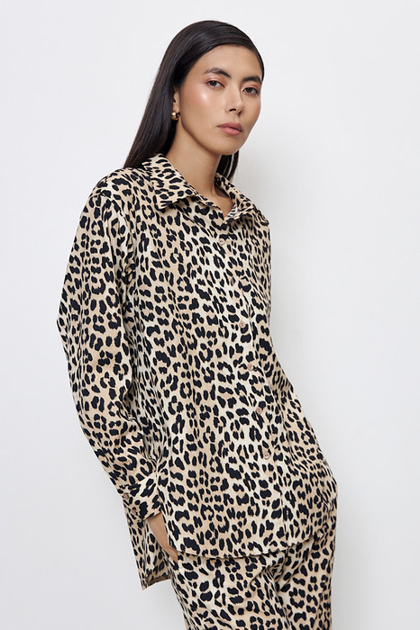 Рубашка из хлопковой ткани свободного силуэта с застёжкой на пуговицы. Низ изделия асимметричной длины (спинка удлинена относительно переда) с закруглениями по бокам. Вырез горловины обработан отложным воротником на стойке. Рубашечный рукав на манжете с застёжкой на пуговицы. На задней части изделия выполнена кокетка с небольшой складкой. Достоинство этой модели - в способности скрыть некоторые недостатки фигуры. Её можно сочетать как с брюками, так и с джинсами.