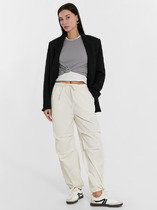Брюки прямого силуэта из эластичного полотна. Пояс притачной с эластичной резиной. На передней части брюк застрочены стрелки.