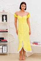 Платье AURA 3265-164-Р лимонный+молочное кружево