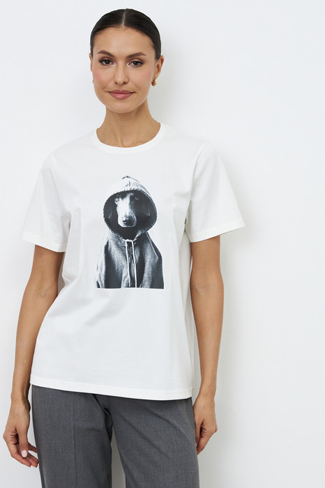 Джемпер свободного силуэта из хлопкового эластичного полотна. Втачной короткий рукав. Круглый вырез горловины оформлен бейкой.