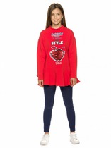 Леггинсы заужены к низу. Удобный пояс на эластичной резинке. Материал: Футболка – Кулирная гладь, леггинсы – вискозный трикотаж с эластаном.Состав:Футболка – 100% хб, леггинсы – 93% вис,7% эл.