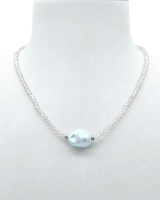 Хрустальное стекло, жемчуг Майорка, ювелирный сплав. Гальваническое покрытие: родий.