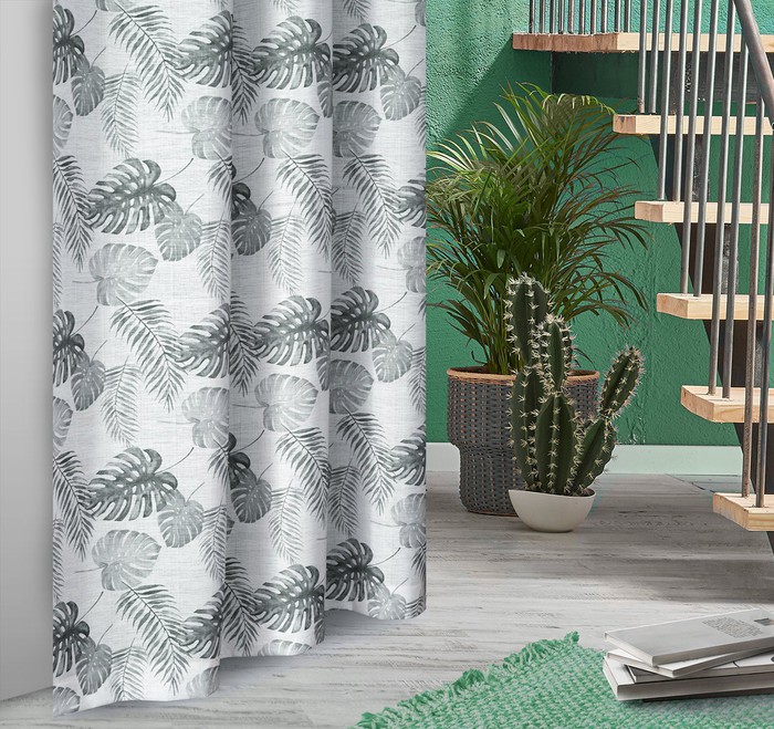 Совместные покупки Пермь Товары для дома и дачи Шторы — 9914, ГАВАЙИ - серый, МЕТРАЖ портьерный, ширина 160 см, белый фон, серые листья,