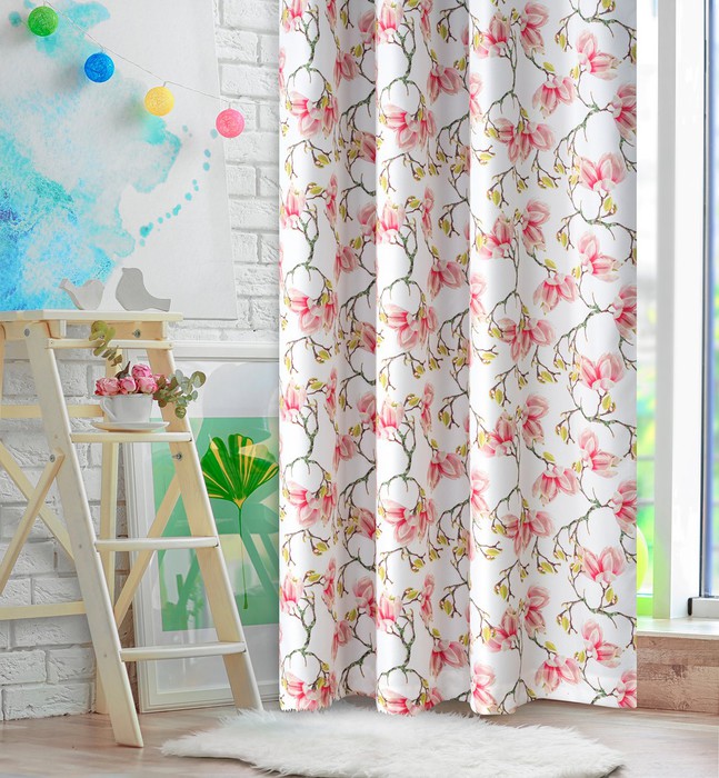 Совместные покупки Пермь Товары для дома и дачи Шторы — 9915, МАГНОЛИЯ, МЕТРАЖ портьерный, ширина 160 см, белый фон, розовые цветы, терм