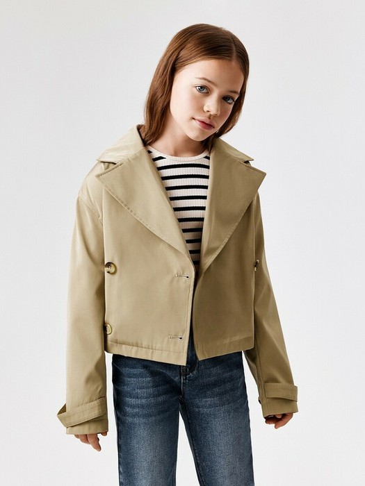 Детский укороченный плащ для девочки выполнен из ткани с водоотталкивающей пропиткой, которая обеспечивает защиту от непогоды. Модель в бежевом цвете легко комбинируется с различными элементами гардероба, создавая стильные и элегантные образы. Подкладка выполнена из стандартной подкладочной ткани, а отсутствие утеплителя делает плащ идеальным для температурного режима от +5 до +20 градусов. Двубортная застёжка на пуговицы придаёт классический и утончённый вид. Спереди расположены два функиональных кармана с листочкой. Низ рукавов украшен патами с регулировкой на пуговицы, что добавляет практичности. Съёмный пояс позволяет скорректировать посадку в зависимости от параметров фигуры. Все швы проклеены, что обеспечивает дополнительную защиту от влаги. Отложной воротник с V-образным вырезом подчеркивает элегантность модели.