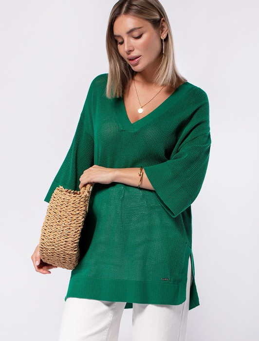 Состав: 60%Хлопок 40%ВисТуника полупрозрачной вязки выполнена из мягкой пряжи на основе хлопка с вискозой. Идеально подойдет в жару, защитит от палящего солнца и при этом не будет перегревать тело. Отлично сочетается с мини-топом или с купальником. В обычной жизни хорошо аккомпанирует с денимом и льном. Изделие дополнено металлическим логотипом бренда.