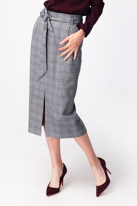 Состав: 65%ПЭ 33%Вис 2%ПУЮбка выполнена из эластичной поливискозы в клетку. Юбка с высокой посадкой на талии и поясом из основной ткани, а также с карманами и модными защипами под поясом. Черно-белая, самая трендовая клетка сезона отлично сочетается абсолютно с любыми цветами верха. Длина юбки за колено с разрезом спереди. Юбка на подкладке (Рост модели 173 см)